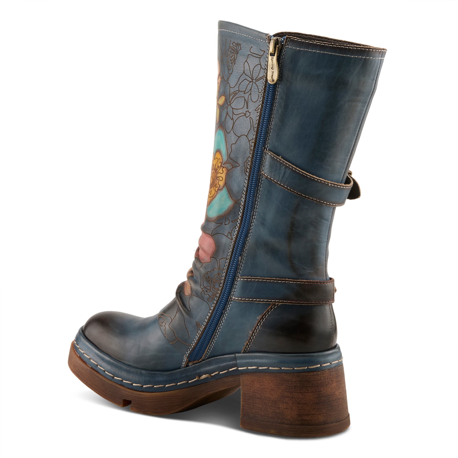 Step into effortless cool with this showstopping hand-painted leather boot, designed for the bold and the stylish. Featuring a rich blend of burnished leather and intricate floral artwork, this knee-high boot embodies modern artistry with a vintage edge. The dual buckle accents add a rugged charm, while the chunky lug outsole ensures durability and stability. A cushioned insole provides all-day comfort, and the inside zip allows for easy on-and-off wear. Whether paired with jeans or a flowy dress, this boot exudes confidence, cool vibes, and undeniable chicness.